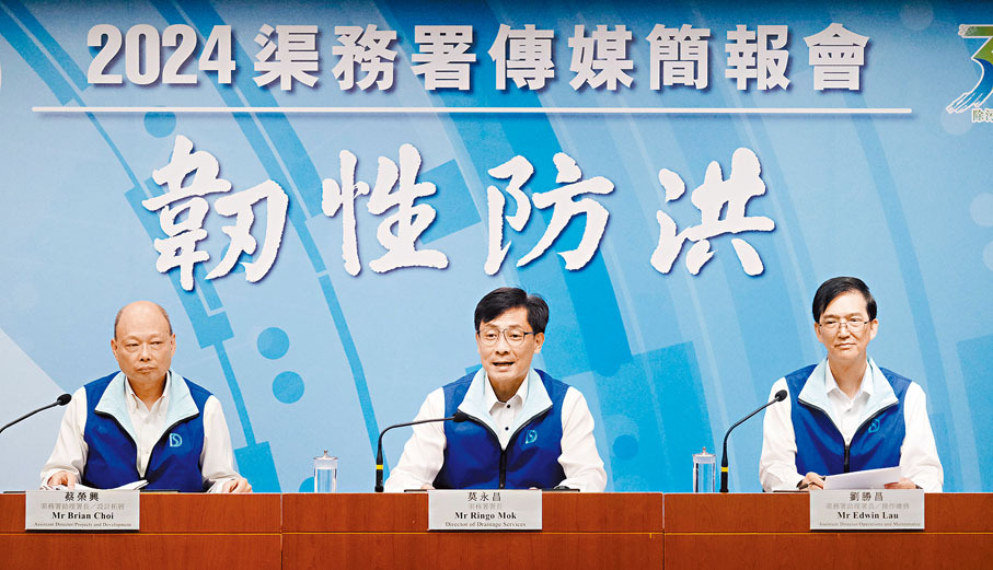 渠務署昨日舉行記者會介紹雨季的防洪工作。莫永昌總結去年工作時,提到去年9月7日的特大暴雨襲港,署方當時共收到86宗水浸個案包括12宗嚴重水浸,事後分析造成水浸的一項重要原因是,雨水沖刷的樹葉、泥沙等堵塞渠管,令積水無法排走。