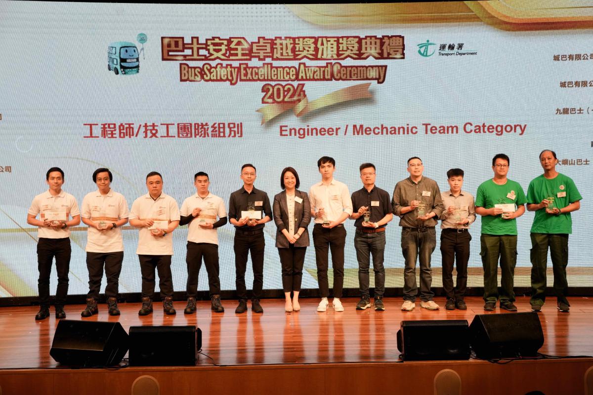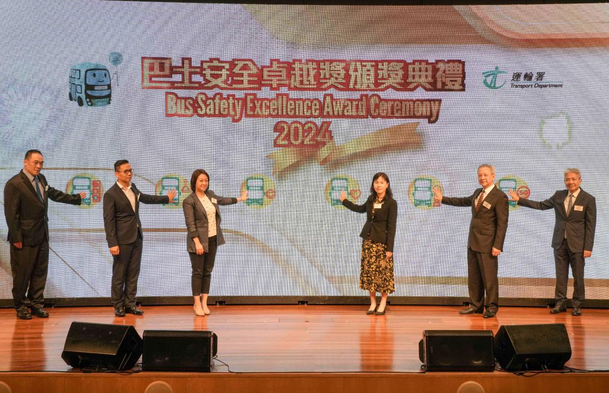 【點新聞報道】運輸署今日(24日)在會展中心舉辦「巴士安全卓越獎頒獎典禮2024」,以表揚專營巴士公司員工每日緊守崗位,為保障乘客安全作出的努力。今次頒獎典禮頒發四大組別獎項,共有58位得獎者,包括28位巴士車長、6位駕駛導師、12位車務督察/站長和4組工程師/技工團隊的12位得獎者。