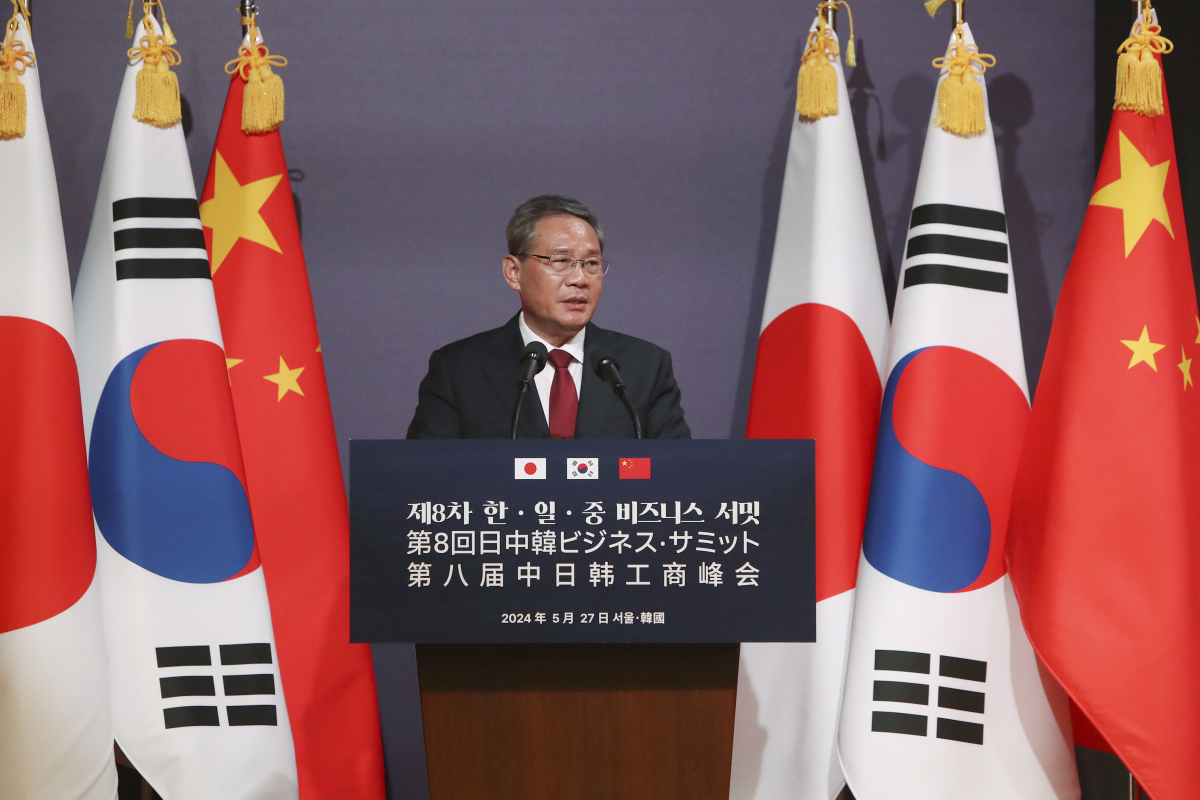 李強表示,面對新挑戰、新機遇,中日韓合作要展現新擔當、新作為。中方願以此次領導人會議為契機,同韓方、日方一道,推動中日韓合作行穩致遠。
