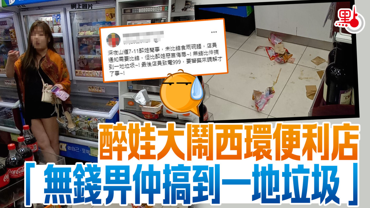 該名網民日前在fb群組「西環變幻時」發文表示,深夜石塘咀山道一間7-Eleven便利店有醉娃鬧事,指對方未畀錢食兩碗麵,「佢銀包無錢,用手機Alipay畀錢,但又Load唔到,佢以為畀咗錢,食緊麵阿姐同(講)佢畀比唔到,佢就再去用Alipay畀,但都係Load唔到。所以惱羞成怒發爛渣!」口出惡言侮辱女職員,還搞到一地都係垃圾。最後,女職員只好報警求助。