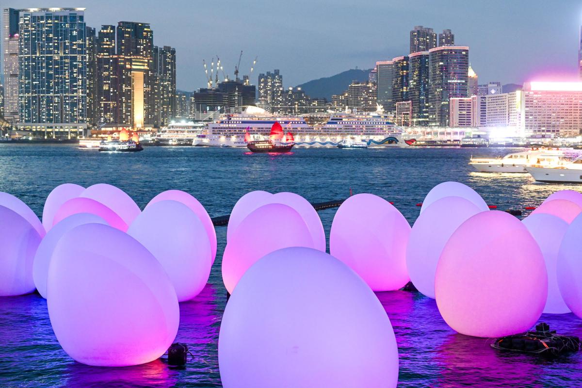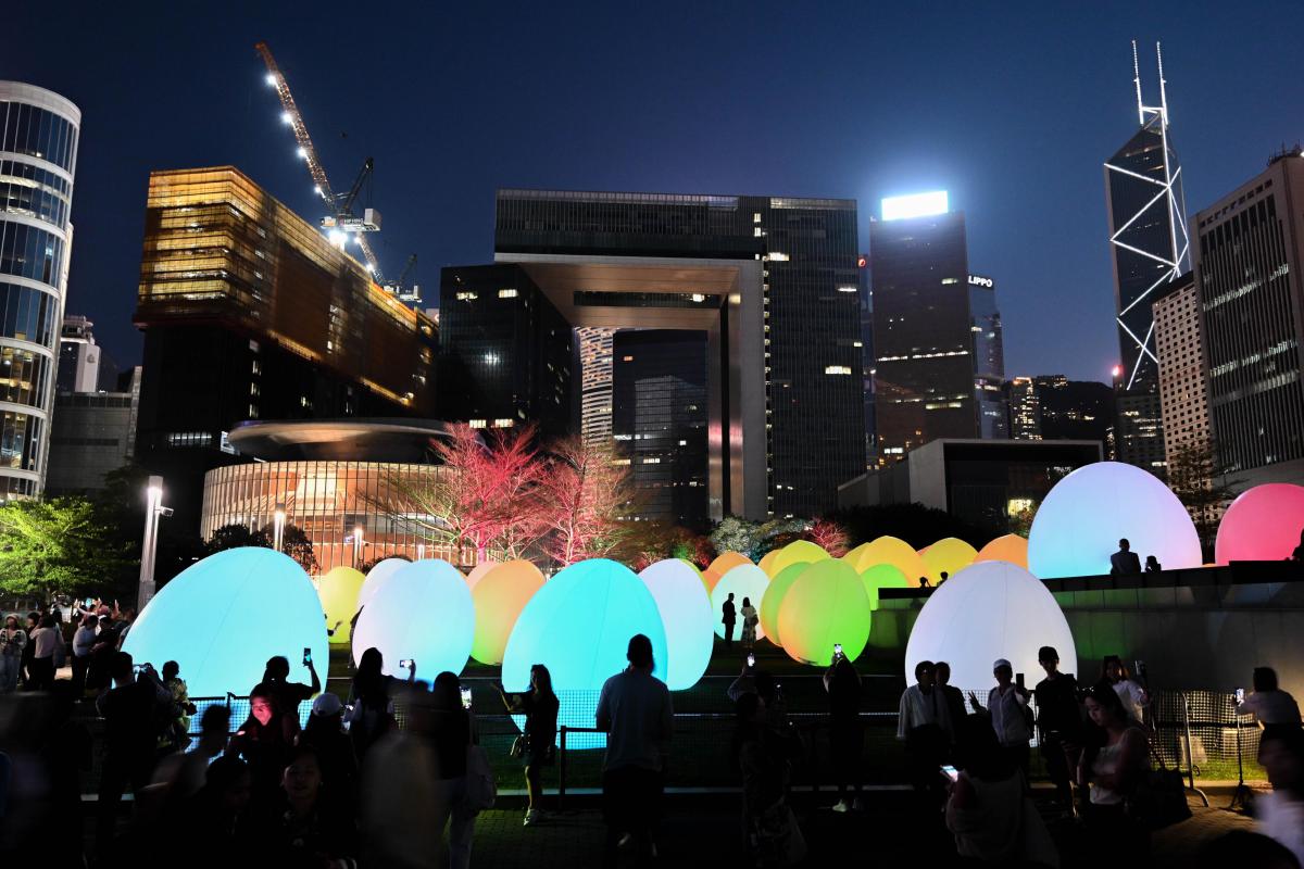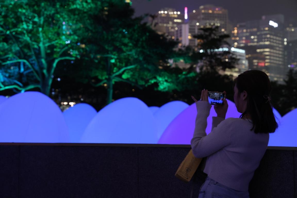 「teamLab:光漣」展覽由康文署夥拍國際藝術團隊teamLab打造,展示兩件藝術作品:《持續站立的生命》中數百個色彩繽紛的發光ovoid(蛋狀物),隨着與觀眾的互動而變換顏色和音效;《呼應之樹》則讓園內數十棵樹木與ovoid呼應,不斷變換光色與音調。展品從添馬公園的草地一直延伸至維港海面,隨着體驗者的互動而觸發不同的幻彩光色與聲效,綻爍的聲光如漣漪般向外泛漾延綿,既成為體驗者的共同創作,亦傳達了城市景觀中存在的連續性之美,在海濱創造獨特的都市光景,與維港的繁華夜景相互呼應。展覽開放時間為晚上6時30分至11時,最遲入場時間為晚上10時50分。參觀人士可在開放時間內直接前往參觀,毋須預先登記。