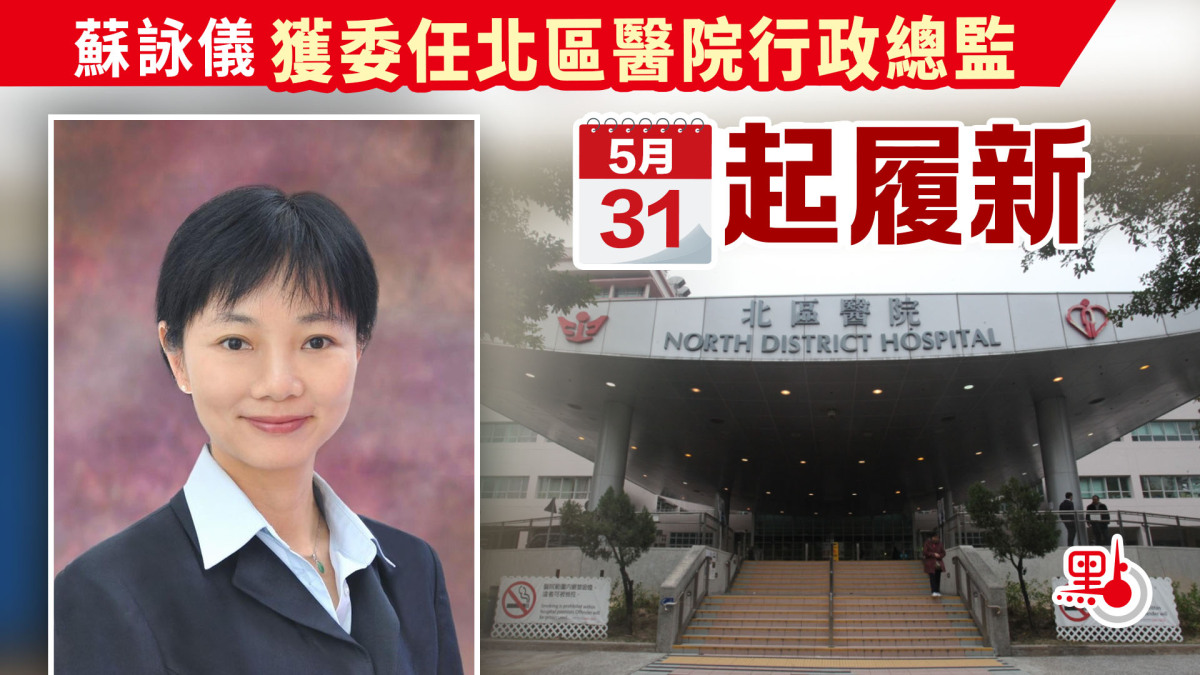 【點新聞報道】醫管局發言人今日(30日)公布委任高層管理人員,蘇詠儀醫生獲委任為北區醫院行政總監,將於明日(31日)履新。