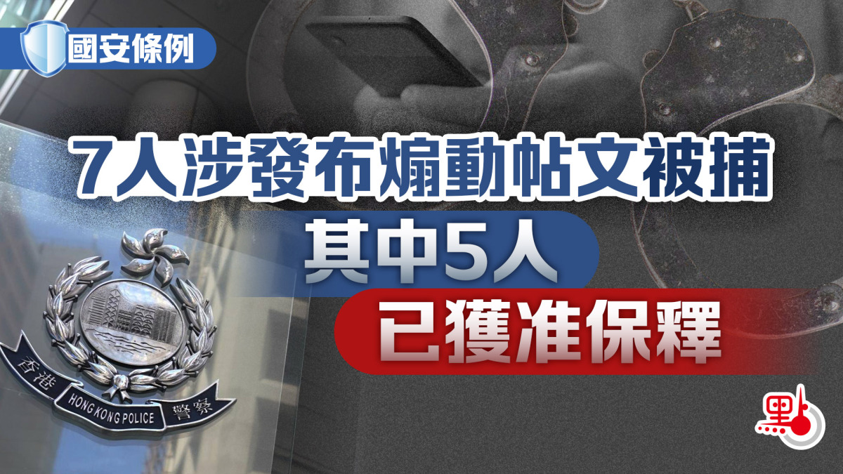 【點新聞報道】國安處前兩日(28日及29日)先後在全港多區拘捕7人,涉嫌違反《維護國家安全條例》下第24條「煽動意圖的相關罪行」,包括正在大欖女懲教所還押的前「支聯會」副主席鄒幸彤。至今日(30日)下午,除了鄒幸彤正被還押,以及前「支聯會」常委關振邦的53歲妻子潘幼翠仍在被調查中外,據報其餘5名被捕人已獲准保釋候查。