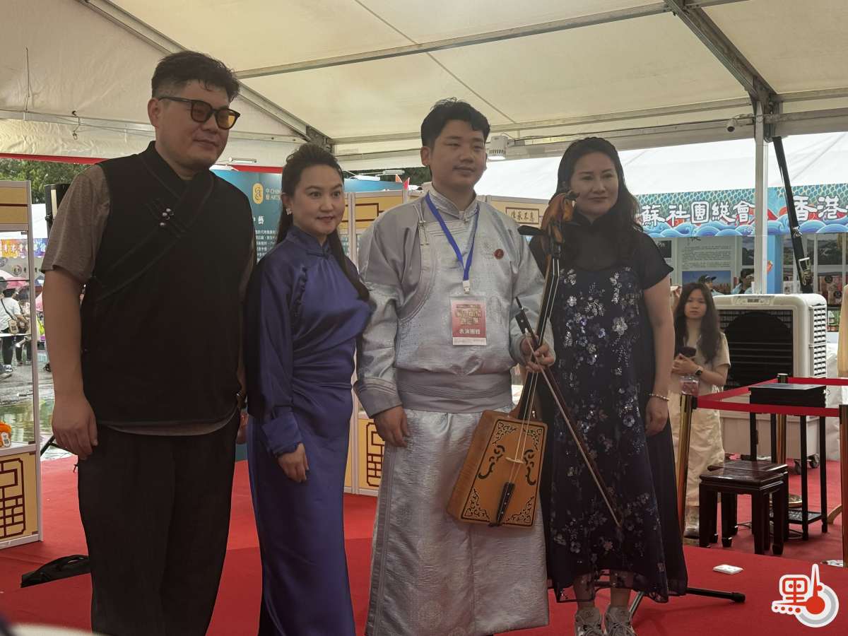 下午時分,香港內蒙古同鄉會帶來了內蒙古的民族傳統樂器和歌唱曲目。四胡的表演者蘇雅、馬頭琴的表演者畢力格、呼麥的表演者麥拉蘇,接受點新聞記者採訪。