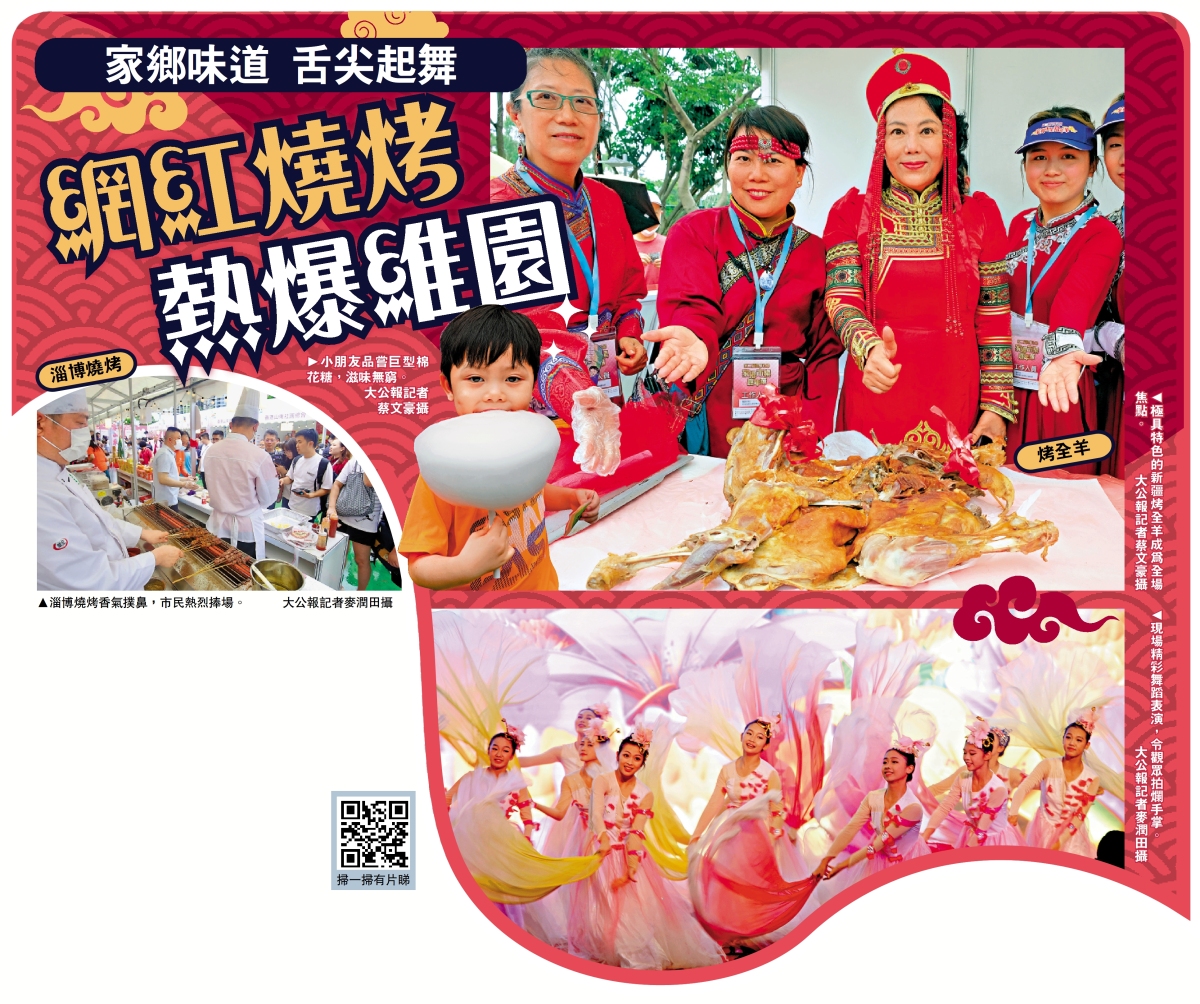 第二屆家鄉市集嘉年華雲集全國各省家鄉特色美食,今年新設熟食區,半數攤檔是來自山東的特色美食,當中在內地早已成為「網紅」美食的淄博燒烤,十元一串的烤牛肉串大受歡迎。香港山東社團總會會長朱新勝介紹,做生意是其次,最重要讓大家感受到山東人的熱情。