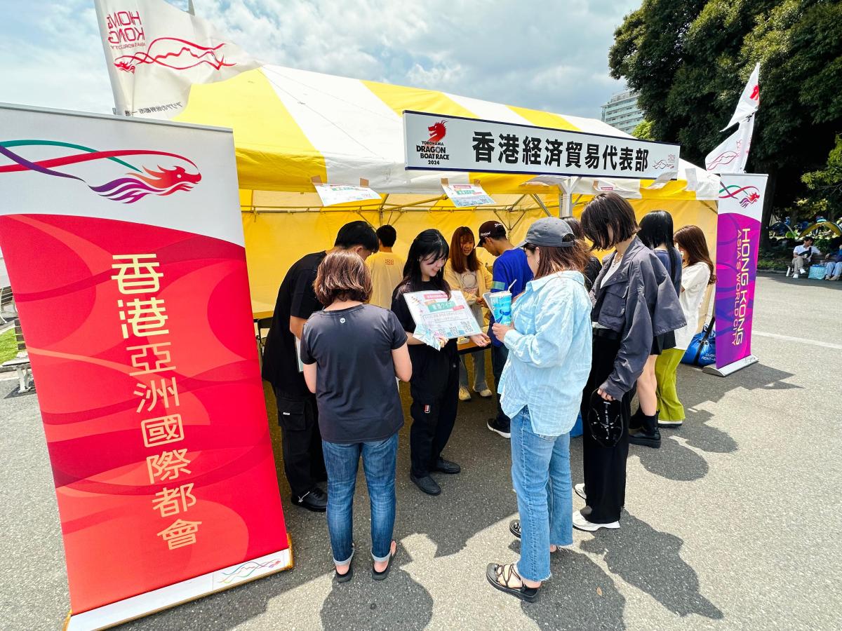 此外,經貿辦在賽事會場設立攤位,向公園遊人及賽事觀眾介紹香港,鼓勵他們到訪香港親身感受香港充滿活力的一面。經貿辦希望透過龍舟賽促進兩地文化交流,並加深日本各界對香港的認識。
