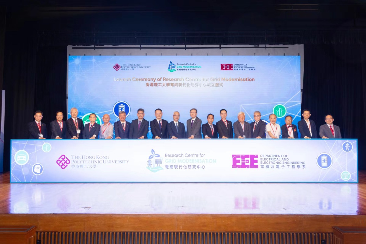 香港特別行政區政府環境及生態局局長謝展寰、創新科技及工業局局長孫東及中國電力企業聯合會秘書長郝英傑於典禮上致開幕辭,中國南方電網有限責任公司總經理錢朝陽發表主題演講,聯同理大校長滕錦光、理大副校長(研究及創新)兼科技及創新政策研究中心主任趙汝恒;理大電機及電子工程學系實務、電網現代化研究中心榮譽主任、前香港創新及科技局局長及機電工程署署長薛永恒,以及理大電機及電子工程學系系主任兼電網現代化研究中心主任鍾志勇,共同見證理大電網現代化研究中心的成立。
