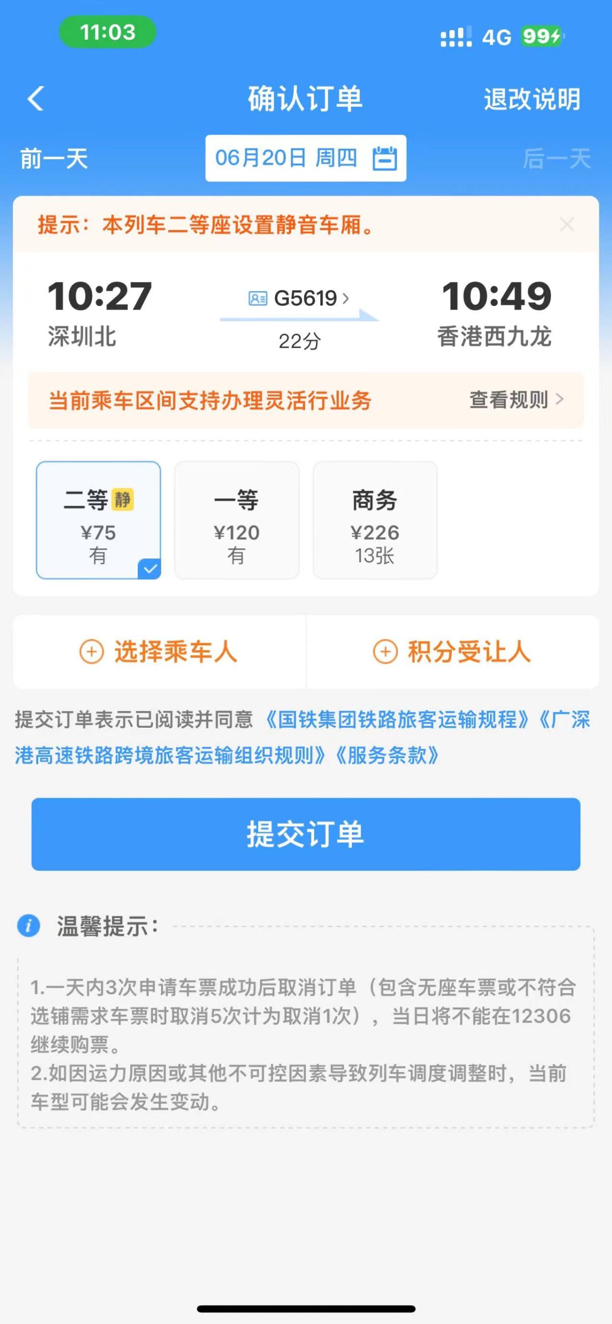 國鐵集團客運部有關負責人介紹,為營造文明有序、溫馨舒適的旅行環境,鐵路部門自2020年12月起在京滬、成渝高鐵試點「靜音車廂」服務,三年多來已經逐步擴展至京廣、鄭渝、京哈、滬昆、西成高鐵,深受廣大旅客青睞。為進一步提升高鐵運營服務品質,優化旅客出行體驗,鐵路部門統籌運用動車組資源,持續拓展「靜音車廂」服務覆蓋範圍,在京廣、滬昆、貴南等高鐵線路上新增20列復興號動車組列車提供這一服務,包括了4列內地與香港間開行的跨境高鐵列車,分別是往返於北京西站-香港西九龍站的G79/80,以及在深圳北站-香港西九龍站間開行的G5619/5656,屆時更多兩地旅客將體驗到更加安寧祥和的乘車體驗。