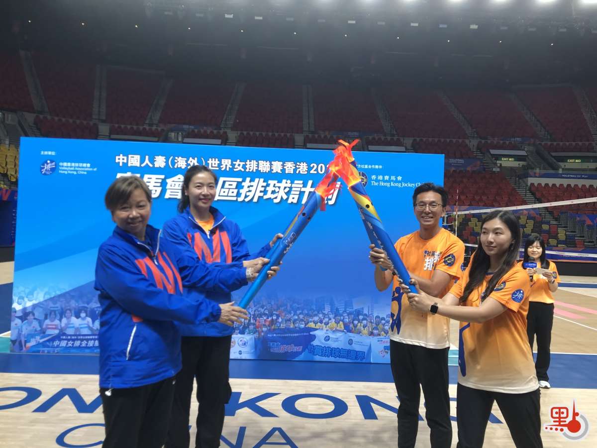 石徐慧芬和魏秋月點燃火炬,傳遞給義工代表,代表再手持火炬穿越義工們。火種象徵「光明、團結和友誼」,隨着火炬穿越義工之間,薪火相傳的精神亦深入人心,令眾人團結一致,共同迎接世界女排聯賽這項體育盛事。