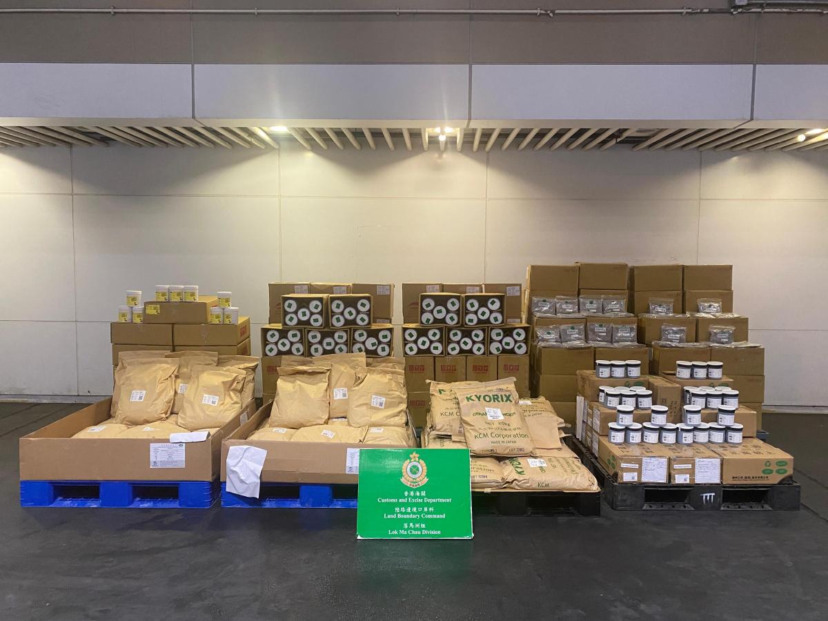 海關人員昨日透過風險評估,在落馬洲管制站截查一輛報稱載有端電極漿料、電阻膠、陶瓷粉及電容阻粒的出境貨車,經檢查後,發現在貨車車斗內的貨物數量與出口艙單上所申報的數量不符,並檢獲該批懷疑未列艙單物品,包括約1050公斤電子粘接材料、約198公斤電子導電材料、約92公斤電阻膠、約800公斤陶瓷粉及約1764公斤電容阻粒。