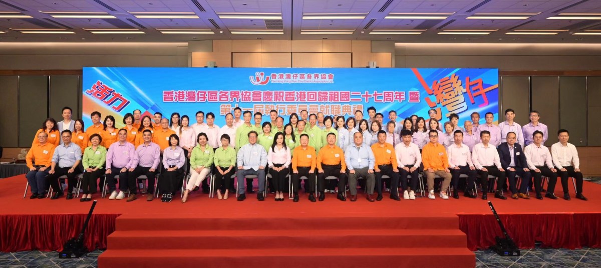 【點新聞報道】香港灣仔區各界協會今日(15日)舉辦慶祝香港回歸祖國27周年暨第11屆執行委員會就職典禮,典禮上展示了協會致力服務社會的五大方向,即活力灣仔、健康灣仔、創科灣仔、環保灣仔及安全灣仔,力求達致「點亮灣仔,關愛社區!」的目的。