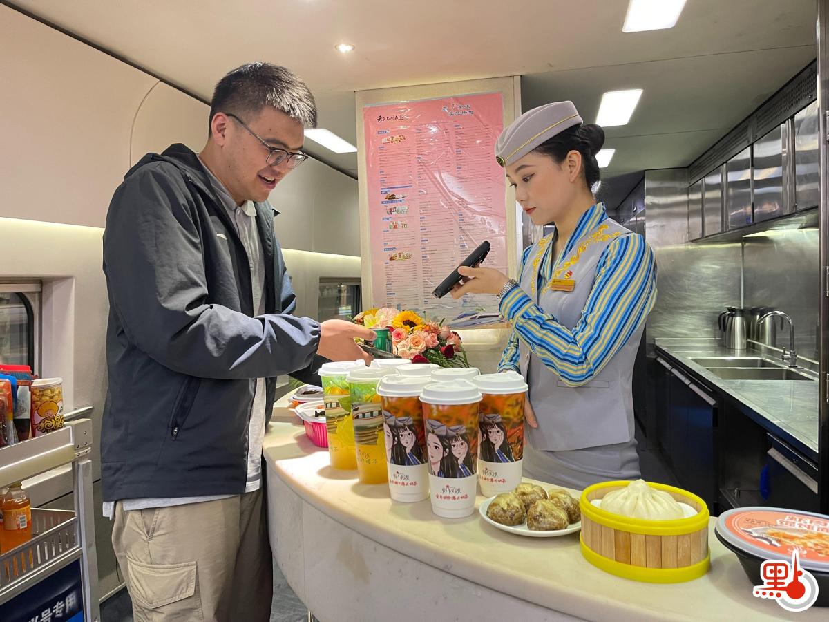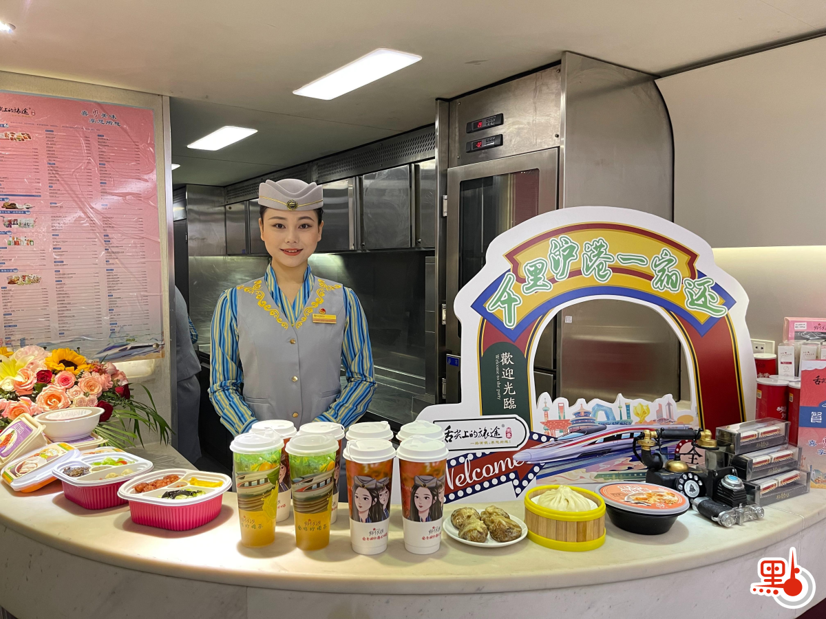 車廂內,整潔的臥鋪環境、精心準備的洗漱包和零食盒、滿含巧思的四色拖鞋備受好評。餐車裏,熱乎乎的腸粉和飄香的鮮蝦雲吞面更是「港味十足」。