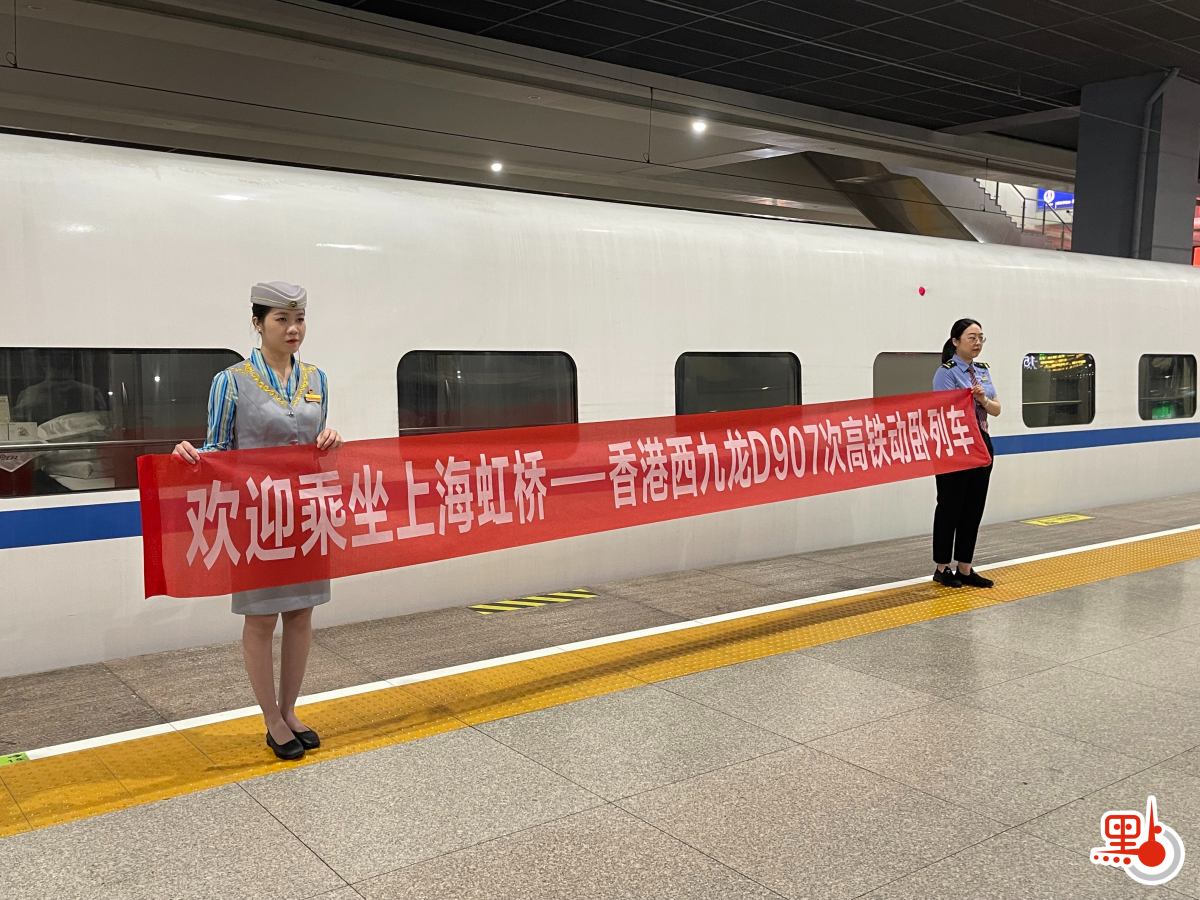 【點新聞報道】今日(15日)晚間8時15分許,滬港夕發朝至動臥列車緩緩駛離上海虹橋站,前往香港西九龍站。不少滿懷期待的首發車乘客提前到站候車。站台上,「千里滬港一宿還」、「舌尖上的旅途」等打卡標語十分醒目,吸引乘客駐足拍照留念。