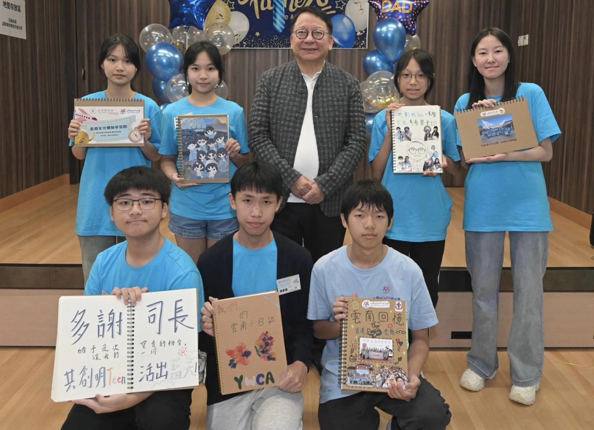 陳國基指,作為一個女兒的爸爸,他經常說除了陳國基的女兒之外,自己還有約6800名「仔仔女女」——他們都是「共創明『Teen』計劃」的學員。昨日參與活動的學員,都是參加了今年復活節假期舉行的雲南交流團。他們每一組同學都製作了一本「交流遊記」,圖文並茂記錄他們參與交流團的豐富行程和感想,非常有心思。陳國基表示,最高興和滿足的是,「仔仔女女」都覺得「共創明『Teen』計劃」讓他們擴闊了眼界、裝備自己,更有機會走出香港、踏足內地,親身了解國家一日千里的發展。