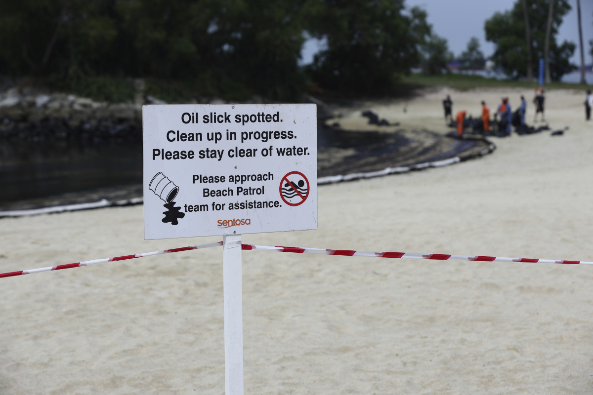 【點新聞報道】6月14日,新加坡對出海域發生撞船事故。一艘荷蘭挖泥船與一艘新加坡油輪碰撞,導致船身損毀及漏油。之後,油污隨海水漂上岸,導致包括聖淘沙島在內的多個海灘出現油污。聖淘沙發展局昨日(15日)公布,聖淘沙丹戎海濱、巴拉灣海灘及西樂索海灘已關閉進行清理工作,民眾不得在上述水域遊泳或參與任何水上活動。