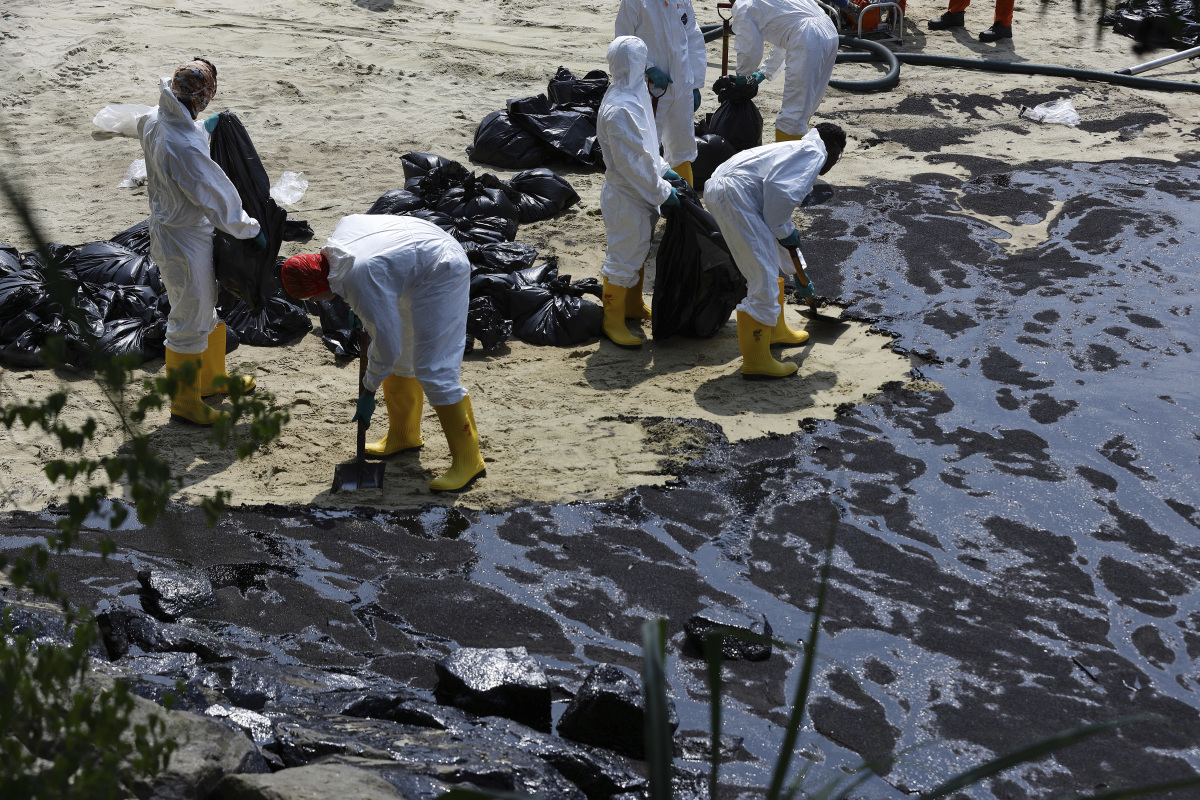 目前,海事局已經出動10多艘船隻前往事發海域噴灑消油劑,並清理海面油污,指目前情況已受控。此外,當局也會在海面放置更多膠桶,阻止油污繼續沖上岸。