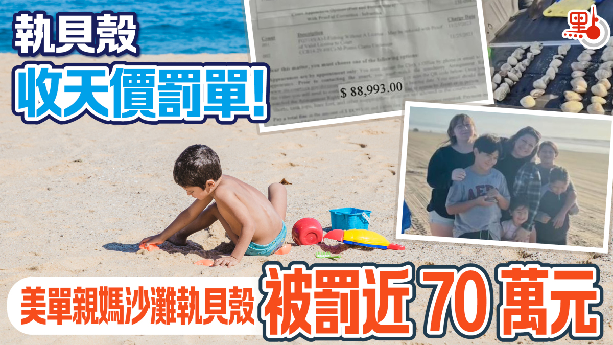 去沙灘玩,唔係衝浪就係游水,其實除咗動態活動,沙灘也有靜態一面,例如沙中的貝殼便是自然瑰寶,不但種類繁多花紋漂亮。但最近就有一家人在沙灘執貝殼竟收天價罰單!美國加州1名單親媽媽與5名孩子去旅行時,在當地著名沙灘執「貝殼」,竟被當局開出8萬8,993美元(約69.4萬港元)罰單!原因他們撿走的是當地獨有的1種「蛤」類,而不是普通貝殼。事件令全家的歡樂之旅全毀,幸好經訴訟辯解後,罰款金額被大幅調低至500美元(約3,900港元),而單親媽直言這次旅行實在難忘,而孩子亦學懂分辯貝殼與蛤有何分別!
