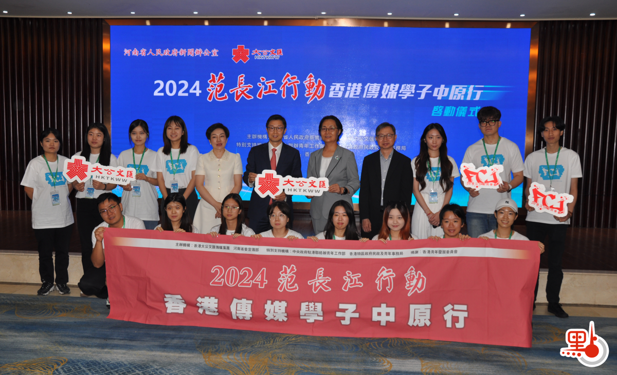 【點新聞報道】大公報今日(17日)迎來創刊122周年的紀念日。由香港大公文匯傳媒集團、河南省委宣傳部共同主辦的「2024范長江行動——香港傳媒學子中原行」活動,當天在河南鄭州啟動。河南省委宣傳部二級巡視員牛素玲與香港大公文匯傳媒集團副董事長、副總編輯王凱波為採訪團授旗。