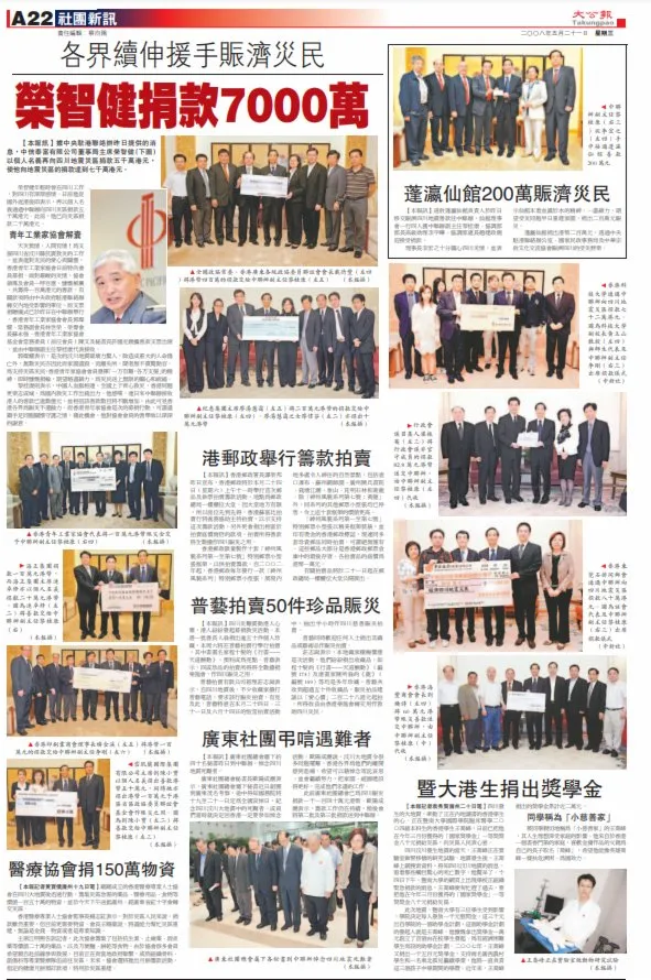 當年香港太多富豪、名人、企業家參與到這場救災中來。