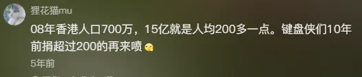 這樣算下來,香港當年為汶川地震捐款超過200億港幣,是除內地捐助最多的地區!