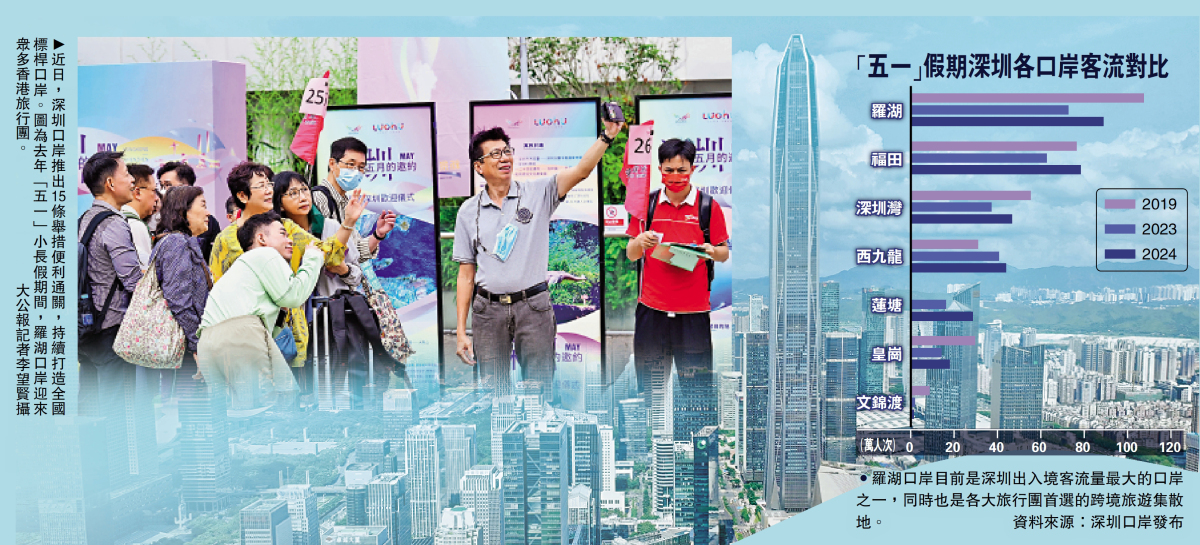 在通關方面,加強深港通關保障協同。依託智能客流分析系統和口岸聯勤聯動機制、深港聯席會議機制,設置旅客等待超時提醒,協調深港雙方根據客流實際情況及時加開查驗通道,進一步便利港澳與內地居民出入境。同時,持續優化口岸通關服務。在具備條件的口岸設置「無行李通道」或「小件行李通道」;動態優化通關流程和通關流線,減少旅客排隊等候時間。