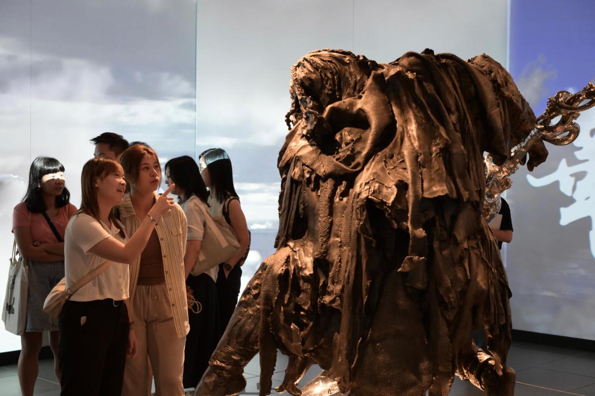 【點新聞報道】香港文化博物館為紀念查良鏞博士(金庸)百年誕辰舉辦的「俠之大者──金庸百年誕辰紀念·任哲雕塑展」,自3月16日開展以來廣受市民及旅客歡迎,已有超過20萬人次參觀,其中約有3萬名為旅客。文化體育及旅遊局副局長劉震、穀雨文化發展基金創辦人兼聯合策展人方圓明和參與製作展覽多媒體裝置的藝術家黃宏達昨日(21日)親臨博物館,向第20萬名參觀者送上別具心思的紀念品,包括由雕塑家任哲製作及附方圓明和任哲親筆簽名的限量版圖錄、展覽海報,以及香港文化博物館與時裝品牌「Sparkle by Karen Chan」合作設計的禮品包。