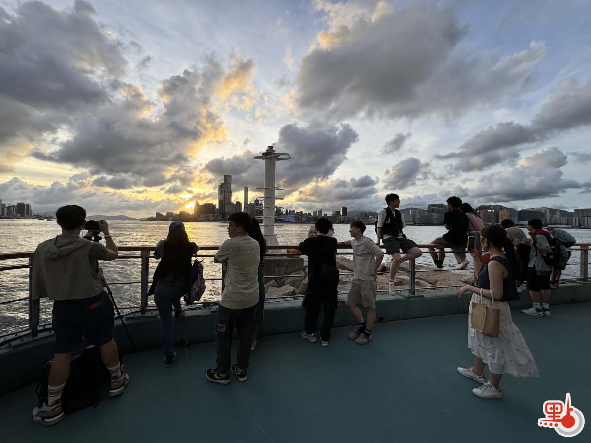 【點新聞報道】本港近日大致晴朗,不過天氣變化莫測,驟雨時有出現。不少市民今日(23日)前往東岸公園欣賞日落時分的維港景色。然而天氣突變,驟雨襲來,有市民匆匆從岸邊折返慌忙避雨,也有市民留在原地繼續欣賞落日美景,享受難得的涼爽。