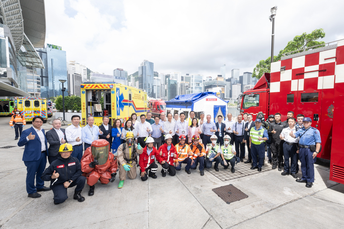 演習期間,警方配備全副武裝的反恐特勤隊及爆炸品處理課迅速抵達現場,分別制服恐怖分子及處理危害物質製劑。消防處其後利用機械犬和無人機於現場進行搜索和空中監測,並聯同民眾安全服務隊、醫療輔助隊和醫院管理局進行即場拯救工作,為傷者進行大型洗消程序,然後將他們分流處理。政府在演習過程中向議員展示了消防處流動指揮車和流動傷者治療車,以及警方的新式流動指揮站和行動工具等。