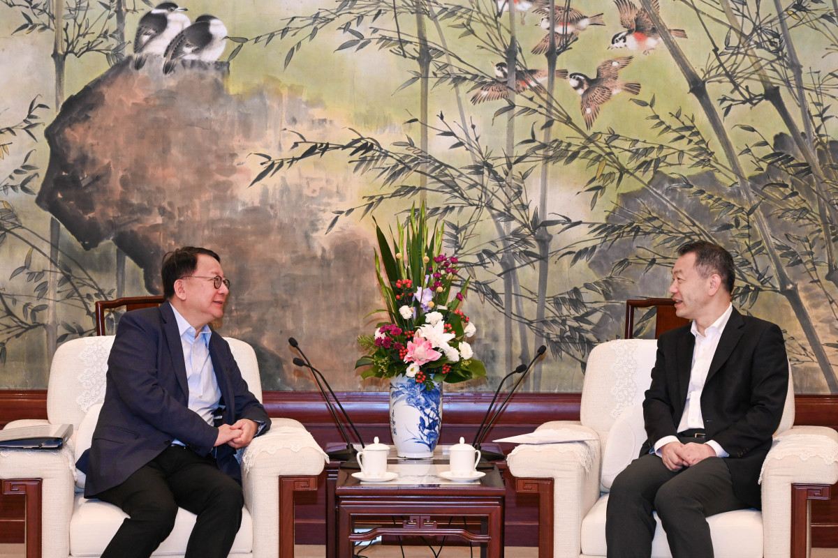 早上,陳國基先與上海市副市長陳傑會面,討論滬港共同關注的事宜。陳國基指出,滬港合作會議機制已成立20多年,兩地交流合作取得豐碩成果。繼滬港合作會議第六次會議今年四月圓滿舉行後,兩地政府部門和相關機構全力在商貿、金融、創科、文創、教育、青年發展等多元領域深化交流合作,攜手發展彼此新質生產力。