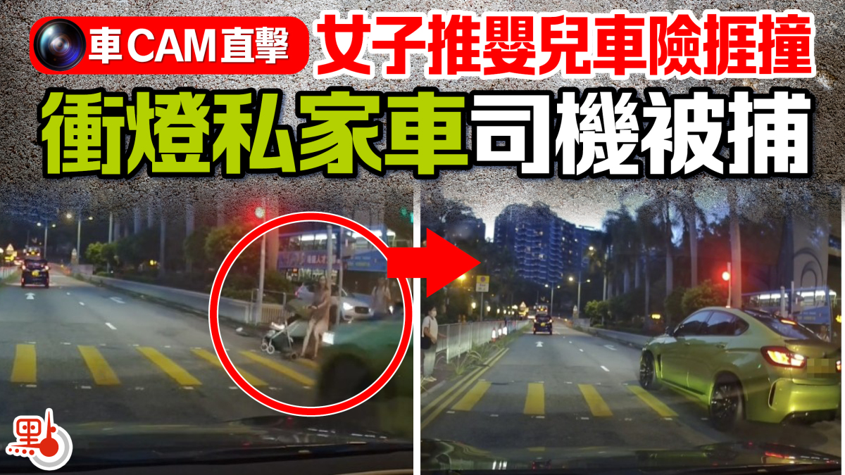 警方表示,留意到網上片段,顯示於6月21日晚上約7時,在綠色行人指示燈顯示期間,一名女子推着嬰兒車,於屯門青山公路掃管笏段近黃金海岸的行人過路處橫過馬路,期間一輛私家車涉嫌違反交通燈指示駛至。事件中無人受傷。新界北總區交通調查隊人員經深入調查後,昨日拘捕一名44歲本地男司機,涉嫌危險駕駛。被捕人已獲准保釋候查,須於七月下旬向警方報到。