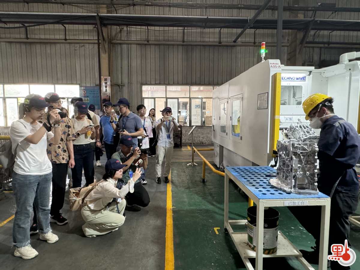 採訪團還走訪了位於肇慶的國家高新技術企業、廣東鴻特精密技術股份有限公司。在鴻特精密的生產車間內,一台台大型機器在快速作業,壓鑄成型的金屬器件整齊地碼好,準備送到相關上游企業。鴻特精密技術股份有限公司副總裁邱碧開告訴記者,小鵬汽車等企業距離工廠非常近,生產的零配件運輸到企業亦十分方便,時間和交通成本比起省外企業可以節省一半。