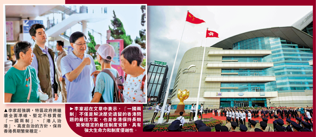 今天(7月1日)是香港回歸祖國27周年的大日子,行政長官李家超發表重磅文章《香港回歸以來「一國兩制」實踐取得舉世矚目的重大成就 「一國兩制」巨大優越性不斷彰顯》。他在文章中表示,香港回歸祖國27年來事實充分證明,「一國兩制」不僅是解決歷史遺留下來香港問題的最佳方案,也是香港保持長期繁榮穩定的最佳制度安排,具有強大生命力和制度優越性。