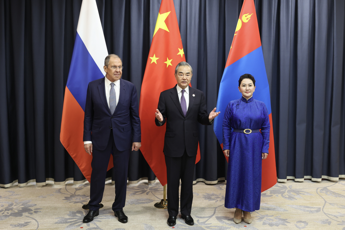 王毅說,中俄蒙是休戚與共的永久鄰邦、命運相連的合作夥伴,三方互利合作具有先天地緣優勢和深厚傳統積澱,符合三國人民的根本利益。近年來,在三國元首戰略引領下,中俄蒙三方務實合作穩步發展,各領域交流對話走向深入,中蒙俄經濟走廊建設扎實推進。今年是中國同俄蒙兩國建交75周年,也是中俄蒙機制成立十周年。中方願同俄方和蒙方一道,恪守合作初心,錨定正確方向,加強團結協作,排除外部干擾,共商互利共贏的有效路徑,共建繁榮穩定的地區格局,共享區域發展的利好成果。