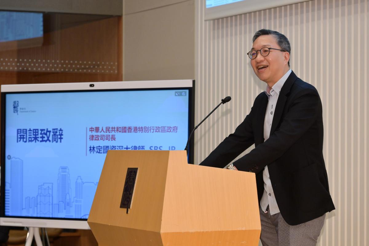 【點新聞報道】律政司今日(6日)正式開展第二階段的「傳承共建 法治社會」法治教育領袖培訓計劃,以多元互動、有趣「貼地」、淺白易明的方式,向約120名任職本地中學教師的學員講授法治知識。律政司司長林定國和教育局局長蔡若蓮為活動開課致辭,民政及青年事務局局長麥美娟亦有出席。