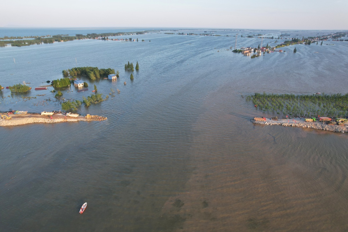 【點新聞報道】據新華社報道,記者今日(8日)從錢團間堤前線指揮部了解到,湖南華容縣團洲垸「第二道防線」錢團間堤出現兩處管湧險情,目前正在緊急處置中。