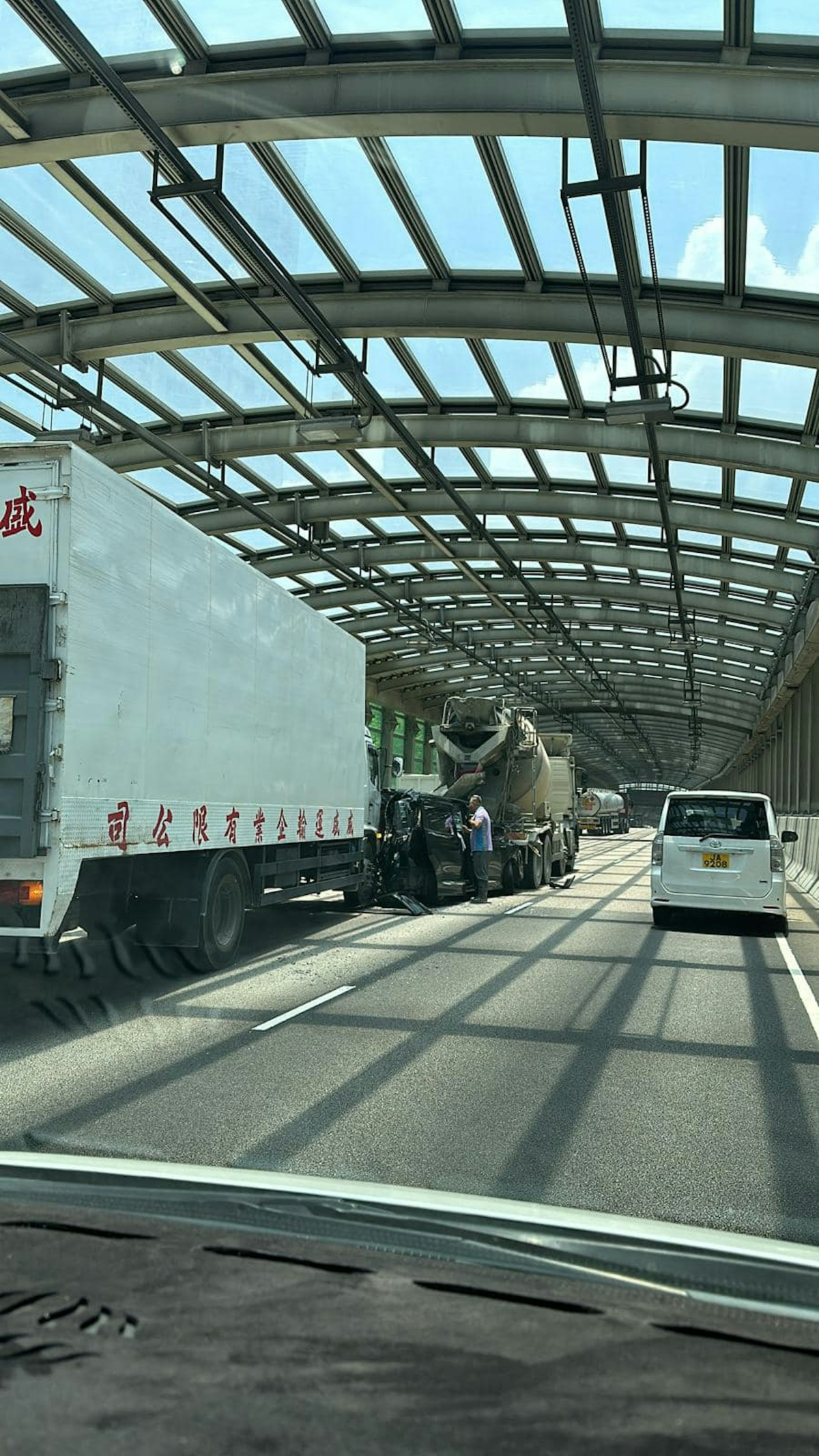 運輸署表示,因交通意外,屯門公路(往屯門方向)近青山灣入境事務中心的部分行車線現已封閉,車龍仍有待消散。駕駛人士只可使用餘下行車線行車。現時上址交通繁忙。
