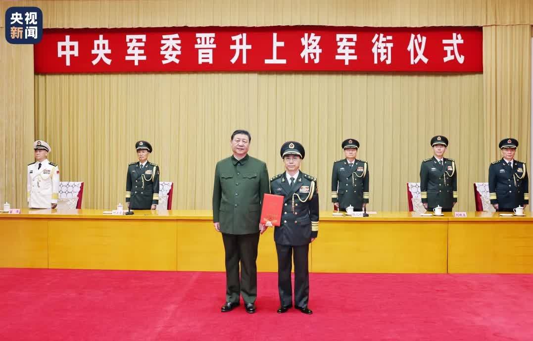 下午4時許,晉銜儀式在莊嚴的中華人民共和國國歌聲中開始。中央軍委副主席張又俠宣讀了中央軍委主席習近平簽署的晉升上將軍銜命令。中央軍委副主席何衛東主持晉銜儀式。