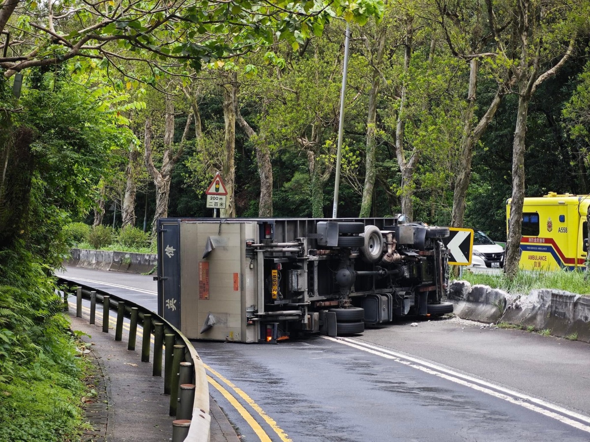 【點新聞報道】西貢發生交通意外。今日(12日)中午12時2分,一輛貨車沿西貢清水灣道出彩虹方向,至壁屋監獄對開疑失控,撞向路中石壆後向左翻側,司機自行爬出報警求助。救護員接報到場,將輕傷司機及乘客送院治理,警方正調查意外原因。