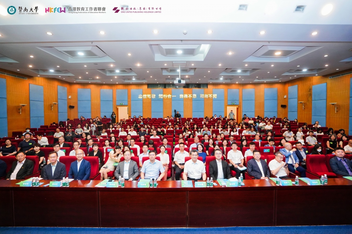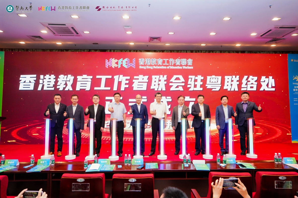 【點新聞報道】為充分發揮香港教育特點及國際化優勢,增進香港與內地教育交流合作,香港教育工作者聯會攜手暨南大學、香港聯合出版(集團)有限公司聯合舉辦「發揮香港教育特點及國際化優勢」教育論壇,論壇於今日(7月12日)在廣州暨南大學盛大舉辦,並於同日舉辦香港教育工作者聯會駐粵聯絡處揭牌儀式,進一步深化粵港教育交流與合作,搭建兩地教育創新和人才融合發展的橋樑。活動共有超過300人出席,場面盛大。