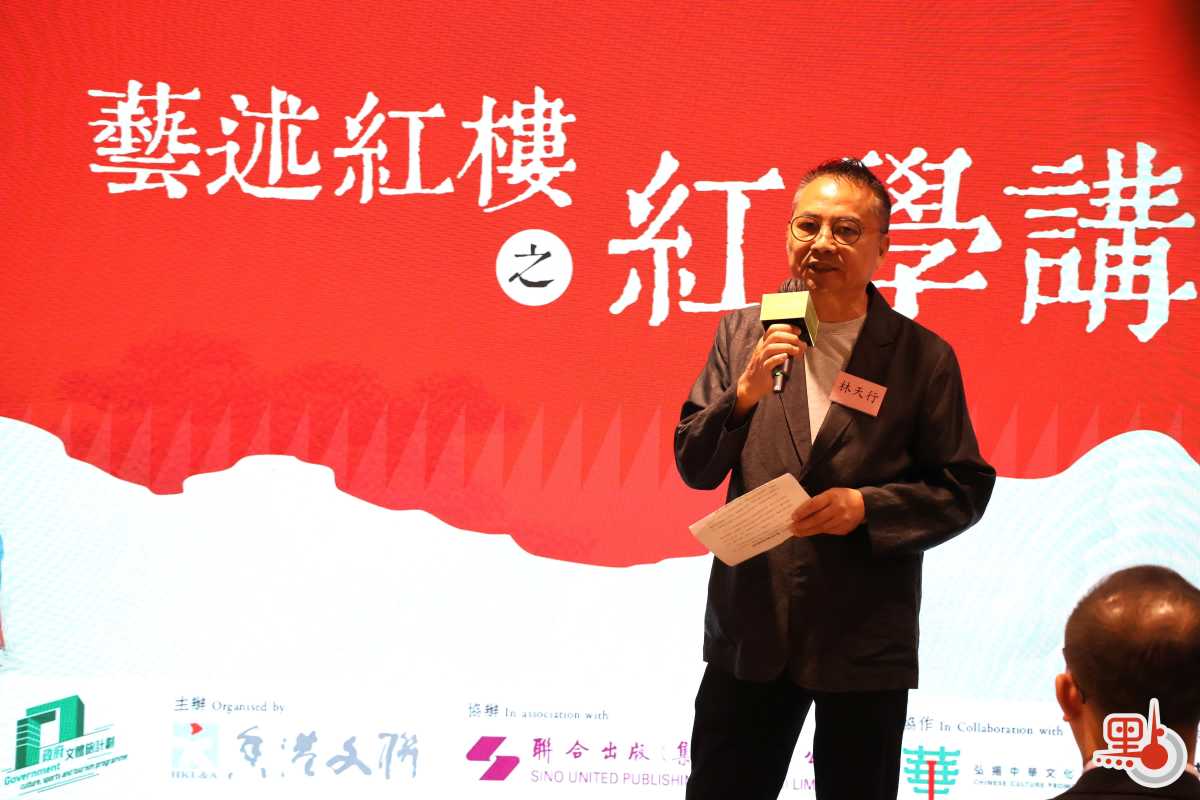 林天行於開場致辭時表示,香港這座國際大都會的文化,深深扎根於璀璨奪目的中華傳統文化之中。香港文聯也秉承着開放包容、相融並蓄的態度,致力於將香港打造為聯結中外文化藝術交流的橋樑。他指出,今次活動的開幕不僅是對紅樓夢文學價值的再發現,更是通過視覺、藝術、音樂、演奏等多種形式的融合,再次向世人呈現這部經典之作,讓更多人走入大觀園,感受跨世紀的魅力。他期待與各位專家學者深入探討紅樓夢的文學價值、藝術特色,以及其對當代社會的影響。同時也希望通過講座激發更多人對「紅學」的興趣與熱愛,與大家共同推動中華優秀傳統文化的傳承與發展。