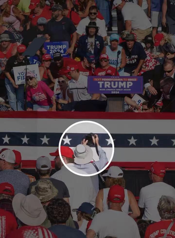 【點新聞報道】美國前總統特朗普上周六(7月13日)在賓夕法尼亞州競選造勢時被企圖行刺,美國特勤局證實槍手為一名20歲白人男性。位於現場的媒體與記者於危急之中用鏡頭捕捉下這段歷史瞬間。除了美聯社記者武奇(Evan Vucci)拍到特朗普被特勤局人員包圍、臉上濺血高舉拳頭呼喊戰鬥(fight)的照片之外,《紐約時報》(The New York Times)資深攝影記者米爾斯(Doug Mills)也拍到擊中特朗普右耳的子彈軌跡。