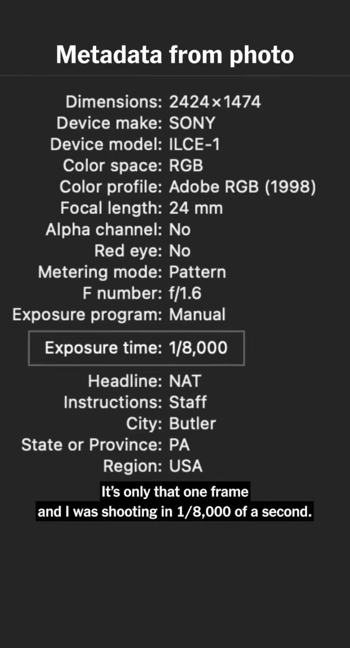 一位前FBI探員接受媒體訪問時表示,根據其經驗,米爾斯所拍到的是槍手發射後,子彈快速飛過所造成的「彈道衝擊波」。當時米爾斯使用的SONY相機,能夠以每秒30幀的速度拍攝,且他設定的快門速度是1/8000秒,在這高速拍攝下,加上一點點運氣,才中了百萬分之一的機會,拍攝出這條彈道痕跡。否則,就算「直接告訴你子彈要發射了,也幾乎不可能捕捉得到」。