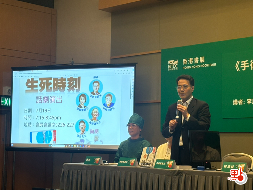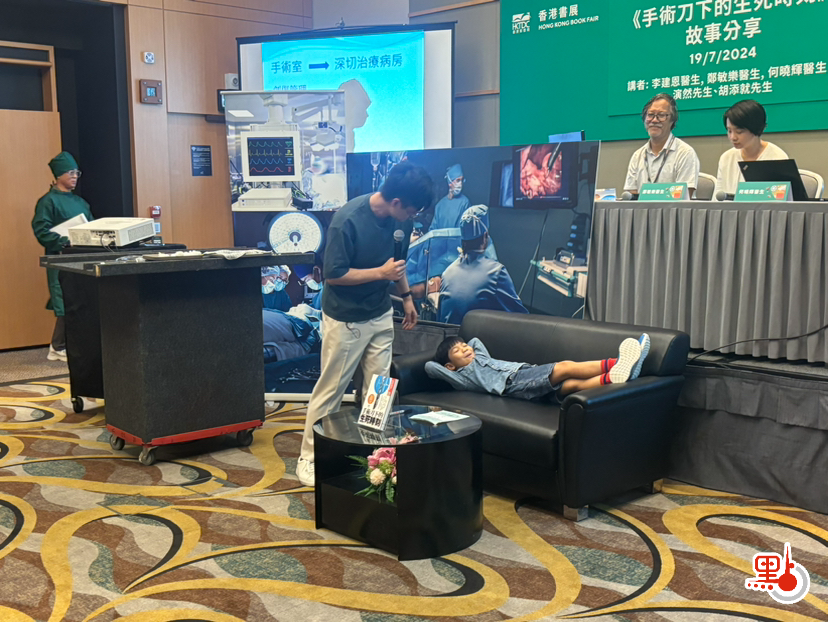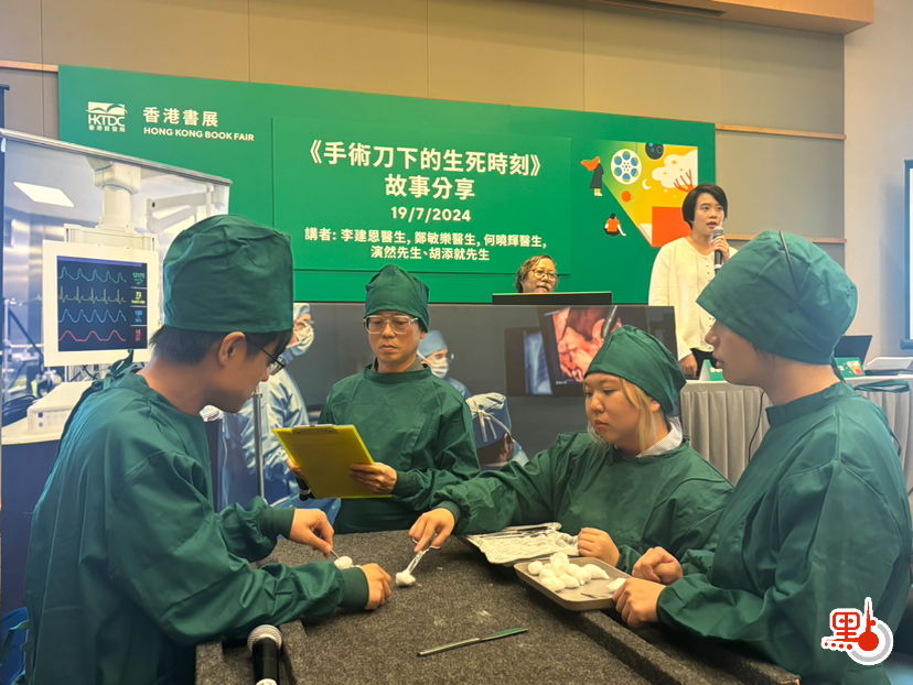 昨日(19日)主筆的醫生們就在書展會場,以話劇的形式,生動地分享自己手術室的故事,讓普羅大眾更直觀地看到醫生救人的場面。話劇以全港最忙的伊院手術室為背景,圍繞一場搶救創傷患者的手術拉開帷幕。故事講述了一男子從高處墮下,盆骨碎裂而入院搶救,最後醫生使用「三合一」創傷醫療技術,創造生命奇跡。在話劇進行的同時,台上的醫生亦在一旁講解每一個步驟,向觀眾們展示了整個搶救創傷患者的過程。
