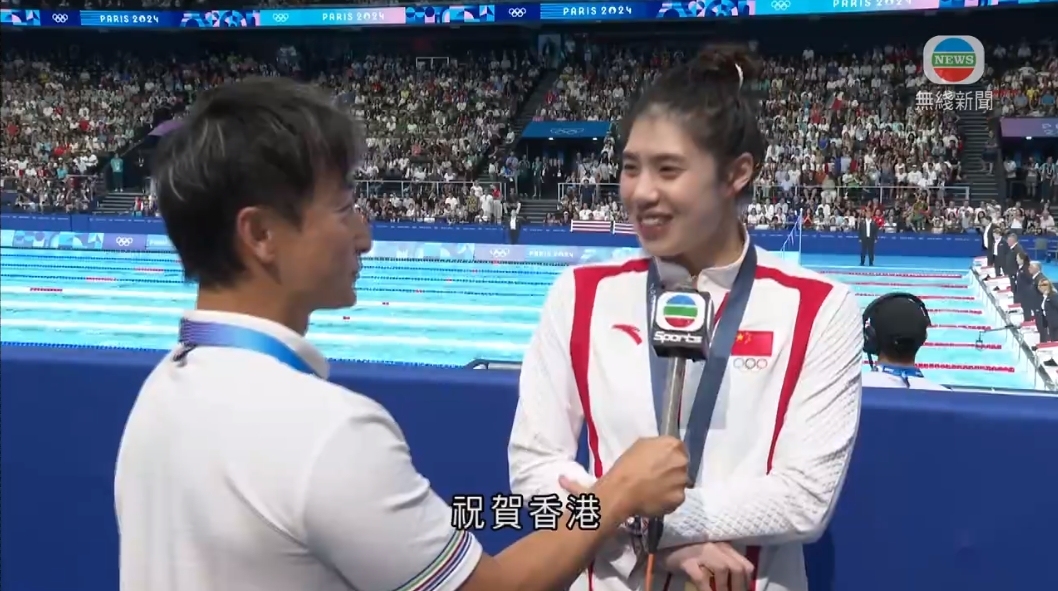 至訪問尾聲,張雨霏感謝香港支持者,希望大家繼續關注中國隊的表現。她又提及香港隊拿到首面金牌,對港隊表示祝賀。