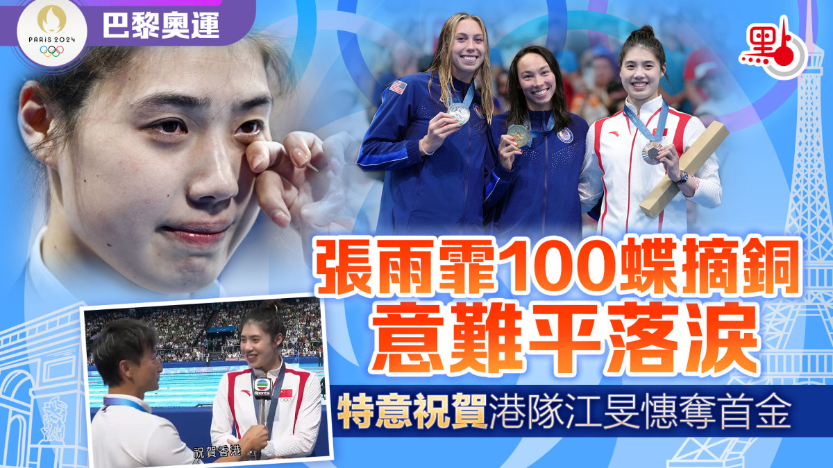 【點新聞報道】7月29日凌晨,巴黎奧運會女子100米蝶泳決賽在拉德芳斯游泳館上演。國家隊選手、「蝶后」張雨霏游出56秒21,拚得一面銅牌。連同上屆東京奧運會,張雨霏獲得的奧運會總獎牌數達到6枚——2金2銀2銅。雖然連續兩屆奧運會站上領獎台,但再度失落100米蝶泳冠軍,張雨霏意難平落淚。