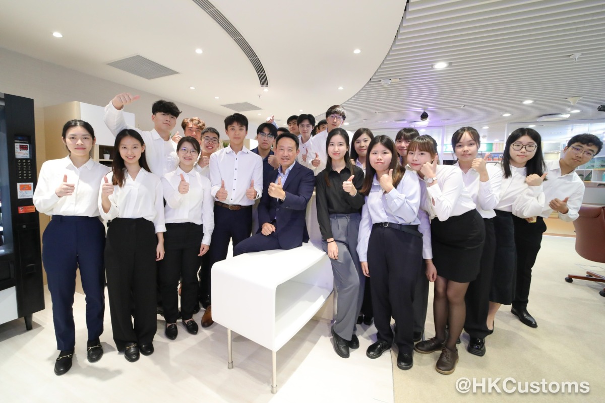 海關表示,六星期的實習期「轉眼就到尾聲」,一班實習生上周四(25日)更有機會去到海關展覽廊參觀,並與海關副關長(管理及策略發展)陳子達(陳Sir)茶聚,互相交流。陳Sir分享了他在大學時期的實習經驗,以及在海關工作的難忘片段。