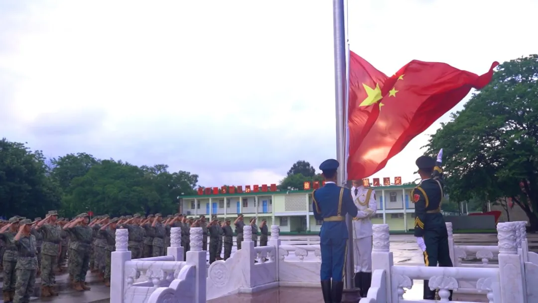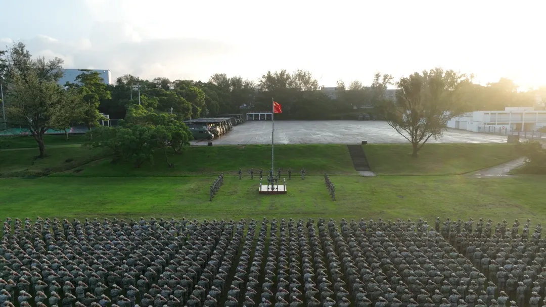 伴隨着雄壯的義勇軍進行曲,鮮艷的五星紅旗迎着朝陽冉冉升起。陸海空三軍官兵面向國旗敬禮,高唱國歌。此次升國旗儀式,進一步激勵廣大駐港官兵聽黨指揮,團結奮鬥,堅決完成好以履行香港防務為中心的各項任務。