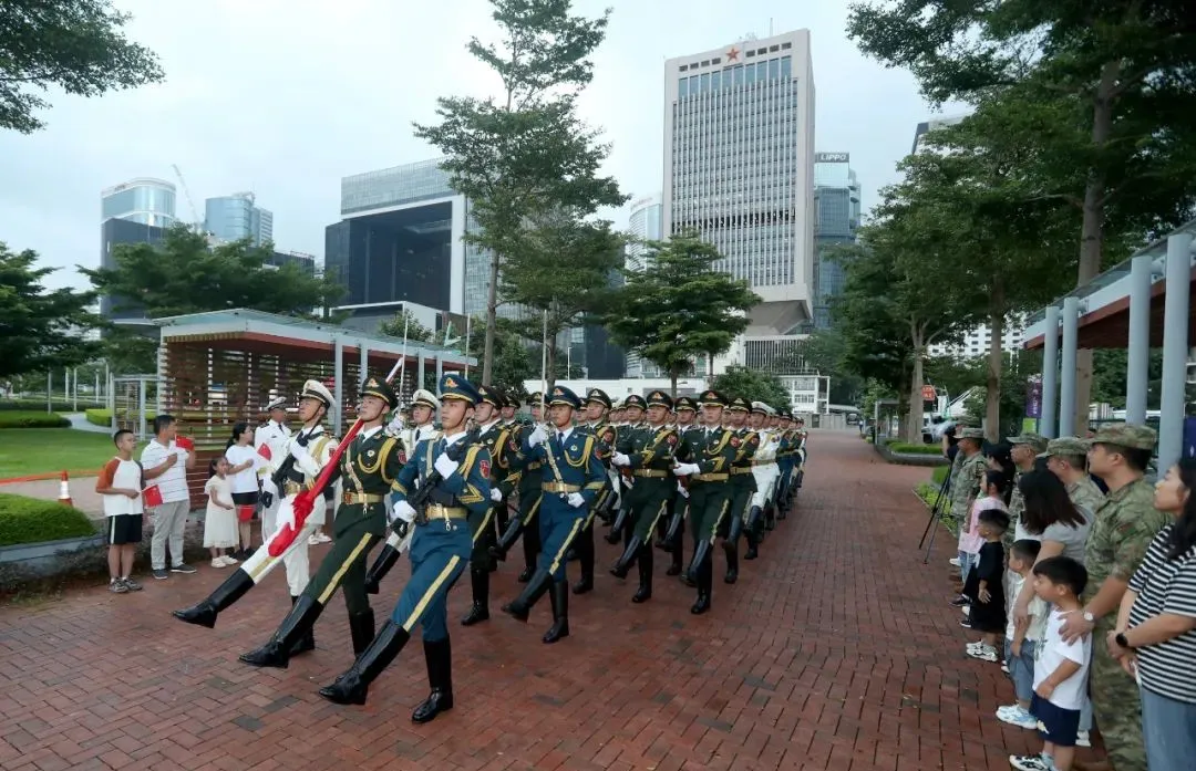駐香港部隊新圍、石崗、昂船洲、赤柱以及石廈等軍營同步舉行了升國旗儀式。