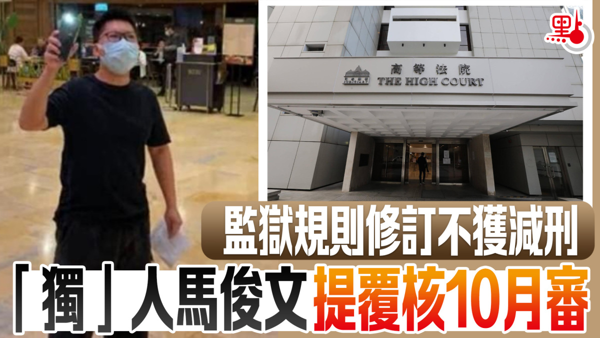 因「煽動分裂國家」罪名入獄、外號「第二代美國隊長」的馬俊文,在《維護國家安全條例》生效後不獲提早釋放,馬俊文早前入稟高等法院申請司法覆核,要求法庭推翻懲教署決定。司法機構網頁顯示,高等法院將於10月22日開庭聆訊,暫未顯示誰擔任主審法官。