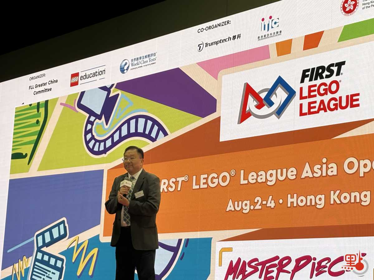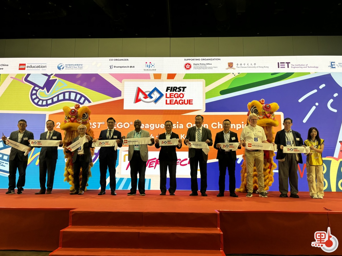 FIRST LEGO League 2024亞洲錦標賽今早(3日)舉行開幕儀式,邀請立法會議員(選委會界別)、香港資訊科技聯會榮譽會長黃錦輝,立法會議員邱達根,創新科技及工業局數字政策辦公室副數字政策專員 (數字基建) 黃敬文,FIRST的CEO Chris Moore,香港中文大學副校長陳德章,工程及科技學會香港分會會長麥樹麟,香港電腦教育學會副主席陳俊銘,樂高教育FLL大中華區負責人Jason Wang及FLL香港代表、尊科數碼教育服務有限公司行政總裁郭天鳴一同主禮,儀式上選手代表也進行宣誓,確保公平比賽。